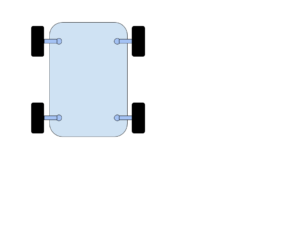 We’ll use a rectangular coordinate system with the origin halfway between the 2 rear wheel posts. The positive x axis will point to the right rear wheel post. The positive y axis will point to the front of the vehicle.